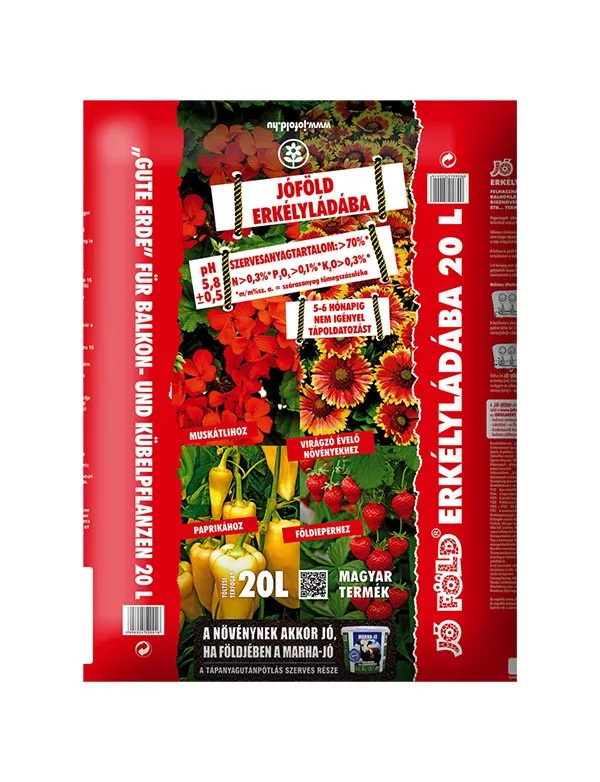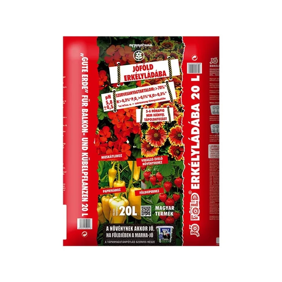 Kifejezetten balkonnövényekhez, muskátlikhoz, balkonládás zöldség- és dísznövényekhez, valamint virágzó évelőkhöz összeállított, könnyű és tápanyagban gazdag virágföld. A gondosan válogatott összetevők — többek között tőzeg, kókuszrost és perlit — segítik a jó víz- és levegőháztartást, ami különösen fontos a konténeres növények egészséges fejlődéséhez. A beépített lassan felszabaduló műtrágya-golyócskák akár 5–6 hónapon át biztosítják a szükséges tápanyagokat tápoldatozás nélkül. Tökéletes választás erőteljes növekedéshez, bőséges virágzásért és dús termésért.