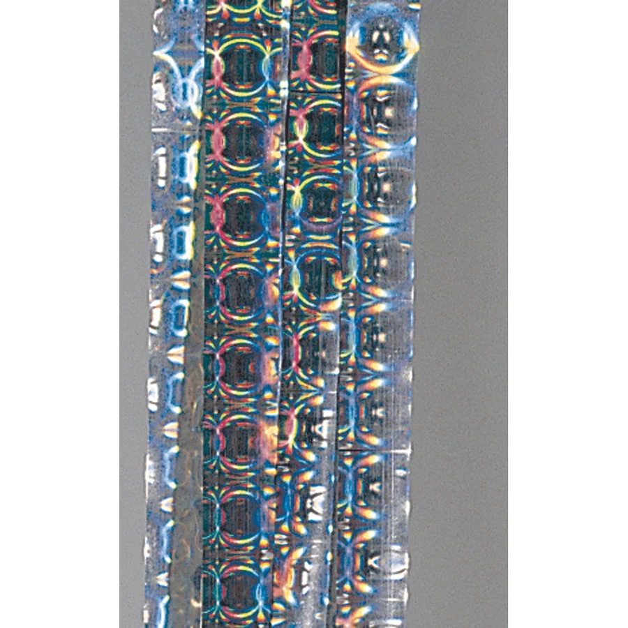 A VISUAL REPULS szalag színes, holografikus felülete a napfény hatására intenzíven csillog és visszaveri a fényt.